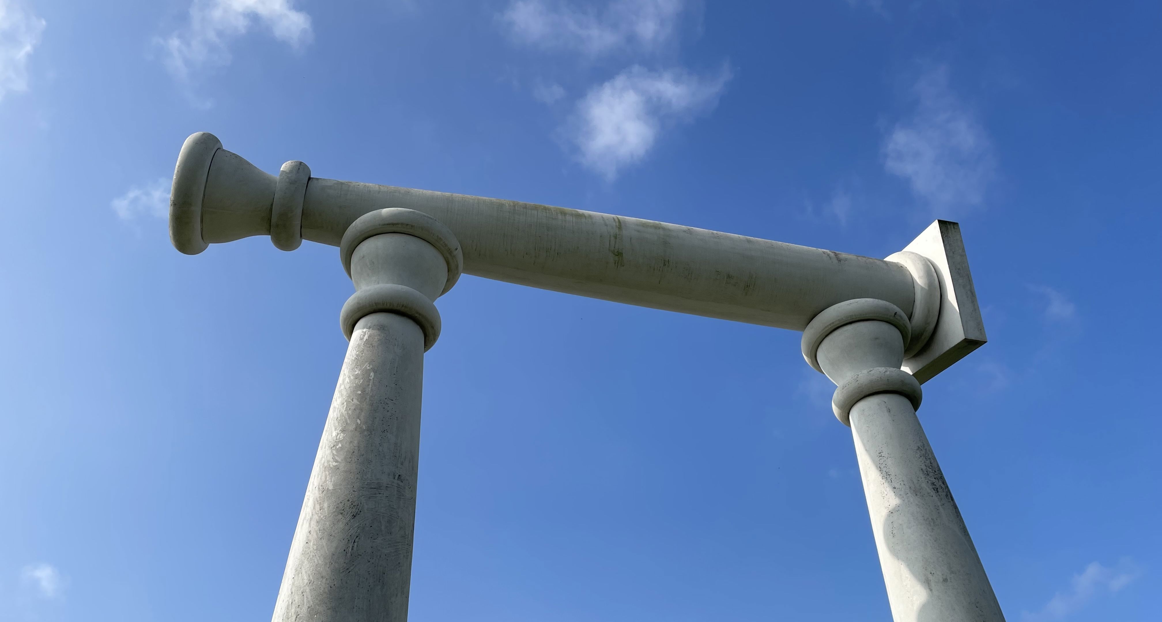 ’De tre søjler’ (The three columns) is an alternative version of a Japanese torii-gate, by Sven Dalsgaard.