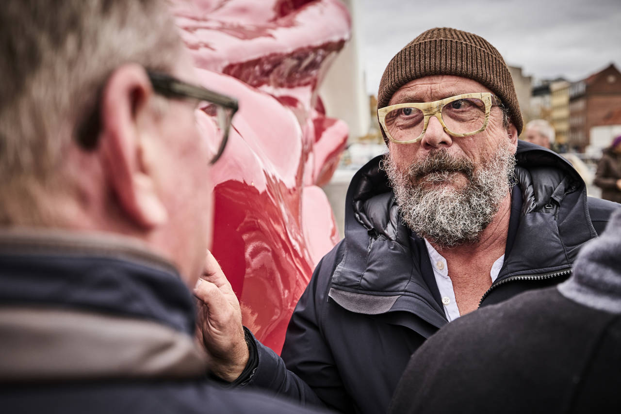 Skulpturen forestiller en kappeklædt mand, der er væltet ned af en alt for lille sokkel. Figurens ansigt er forenklet og kan ikke identificeres. Skulpturen kan således på humoristisk vis forestille hvem som helst og dermed os alle. Skulpturen afspejler den statuedebat, der opleves verden over, hvor demonstranter vælter eller modificerer fortidens statuer over magtfulde personer. Med skulpturens fald ønsker Frandsen at skabe rum for samtale og fri demokratisk debat.