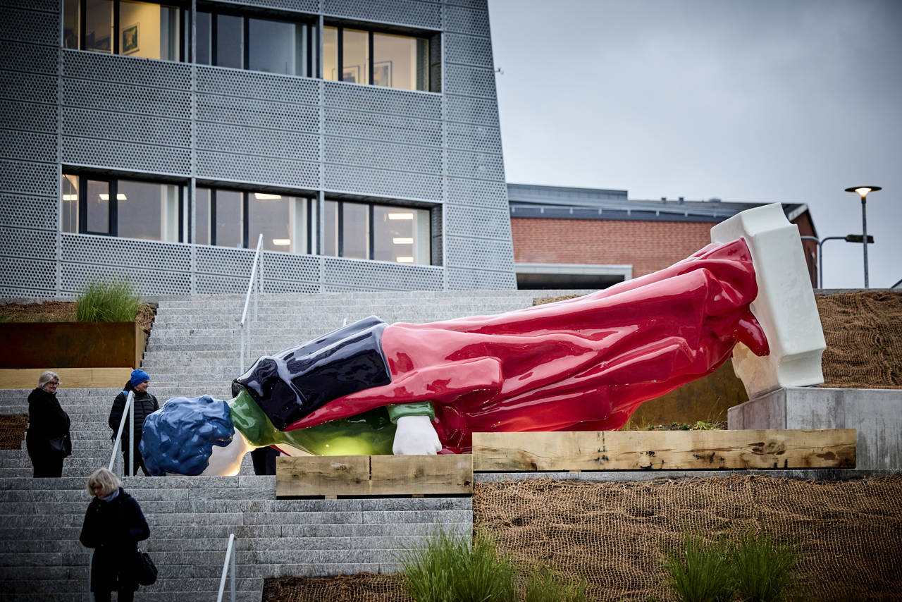Med en totalvægt på næsten otte tons og en længde på otte meter er det i mere end en forstand et exceptionelt kunstværk, der pryder trappen ved Thors Bakke.