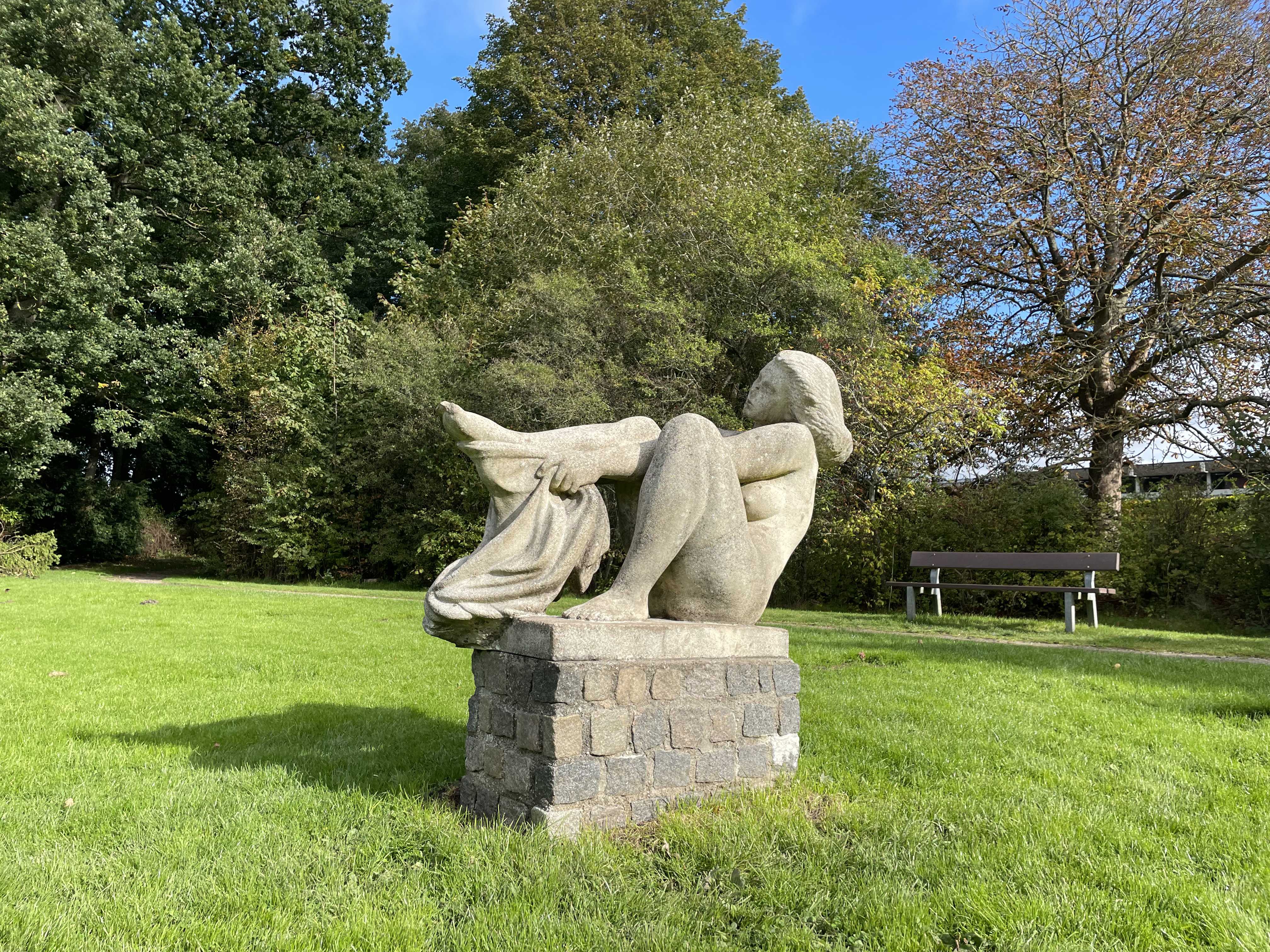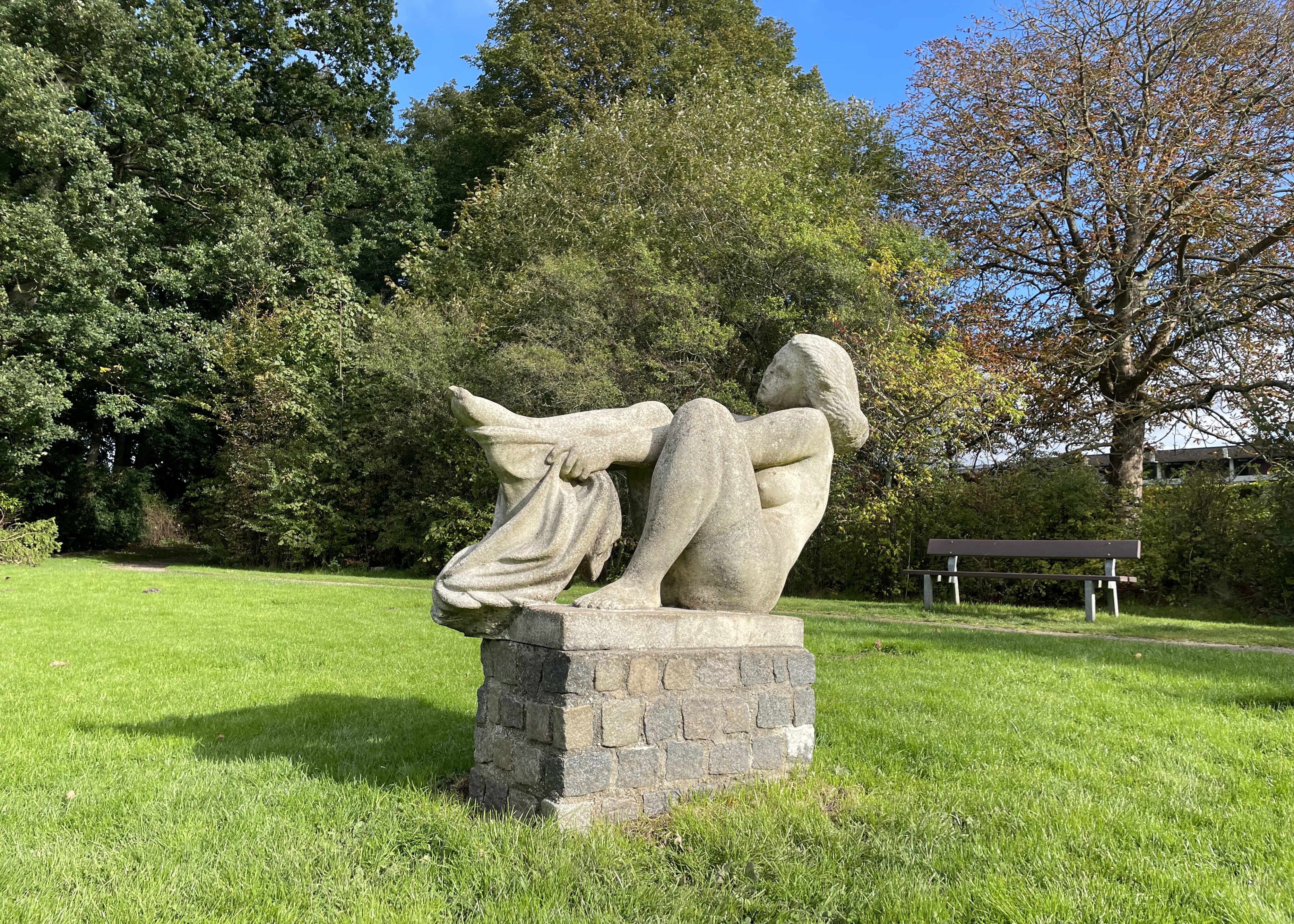 The sculpture is in the image of a naked woman, drying her feet. Hoffmann found his inspiration on the beach at Bellevue: "a place where you get the right thoughts". Hoffmann continues: "The motif is just an excuse to make the sculpture, to solve a plastic problem for me. The name is less important". The sculpture is about the design, while the title, Carina, is merely a suitable poetic name.