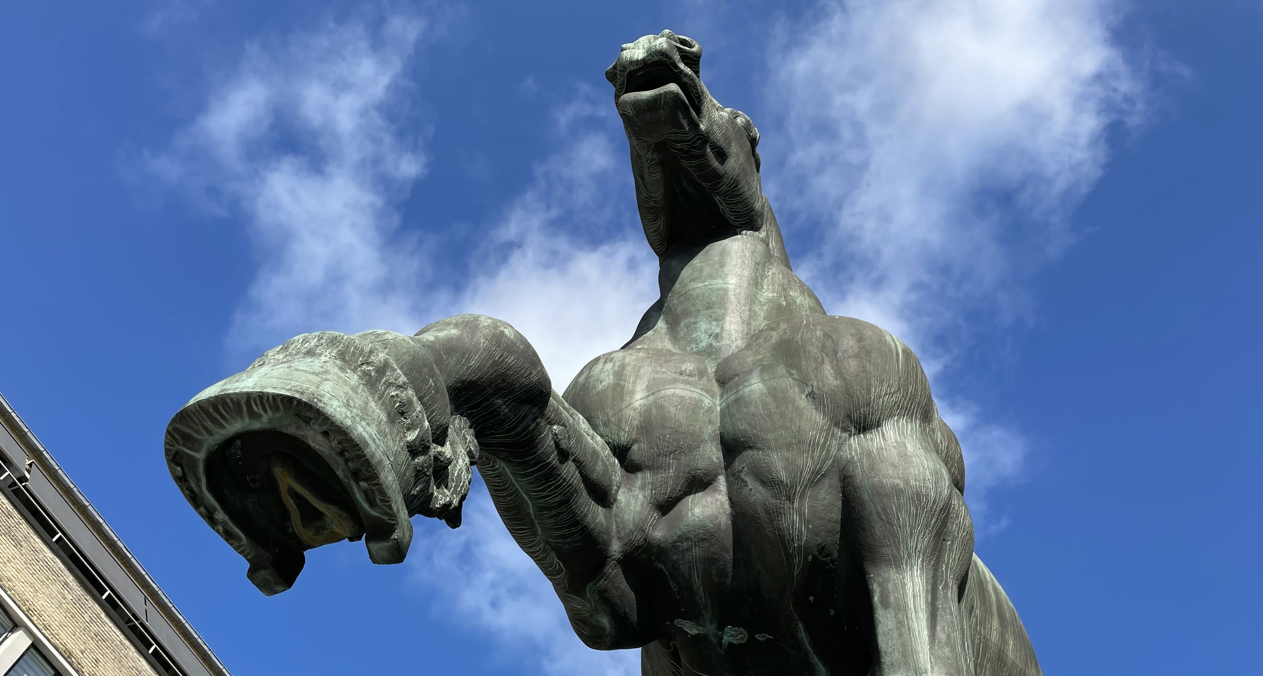 The imposing sculpture of "Den jyske Hingst" (The Jutland Stallion) is considered, along with the equestrian statue of Christian X in Århus, to be the principal work of sculptor Helen Schou. The sculpture expresses power and strength, and illustrates the immense importance which the horse market has had for the development of the city and surrounding area. The base is built from stones from part of the old pavement of the city.