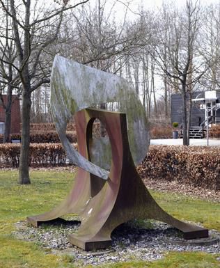 The sculpture was made for Paderup High school, inspired by the nature of the area, as well as the buildings of the high school. The rusty bottom of the sculpture is solidly planted in the ground, while the stainless steel upper part is almost floating in the air, reflecting sunbeams. The shapes of the sculpture connect with each other and with the surrounding space.