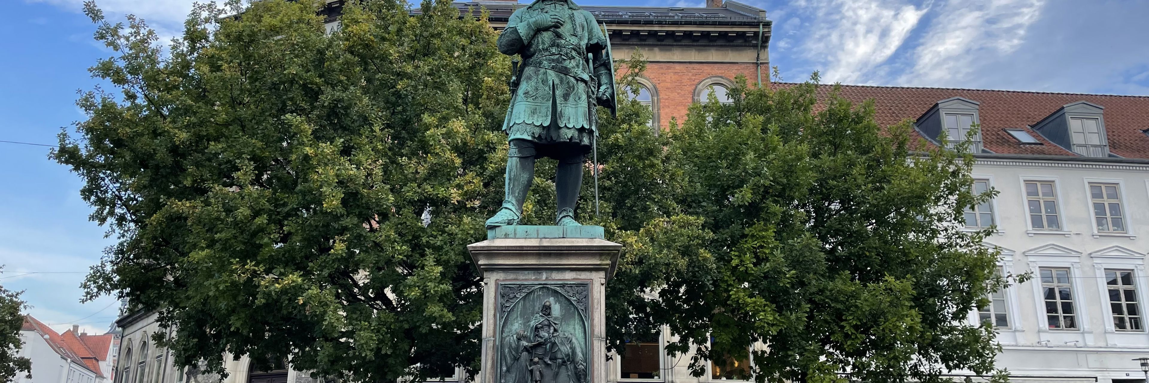 The classicist, monumental sculpture of folk hero Niels Ebbesen, who killed Count Gerhard of Holstein, in Randers, was cast from bronze of the cannons of the warship Dannebrog. Idealistically and artistically, it can be seen as a companion piece to the Landsoldat (Infantryman) of H. W. Bissen in Fredericia.