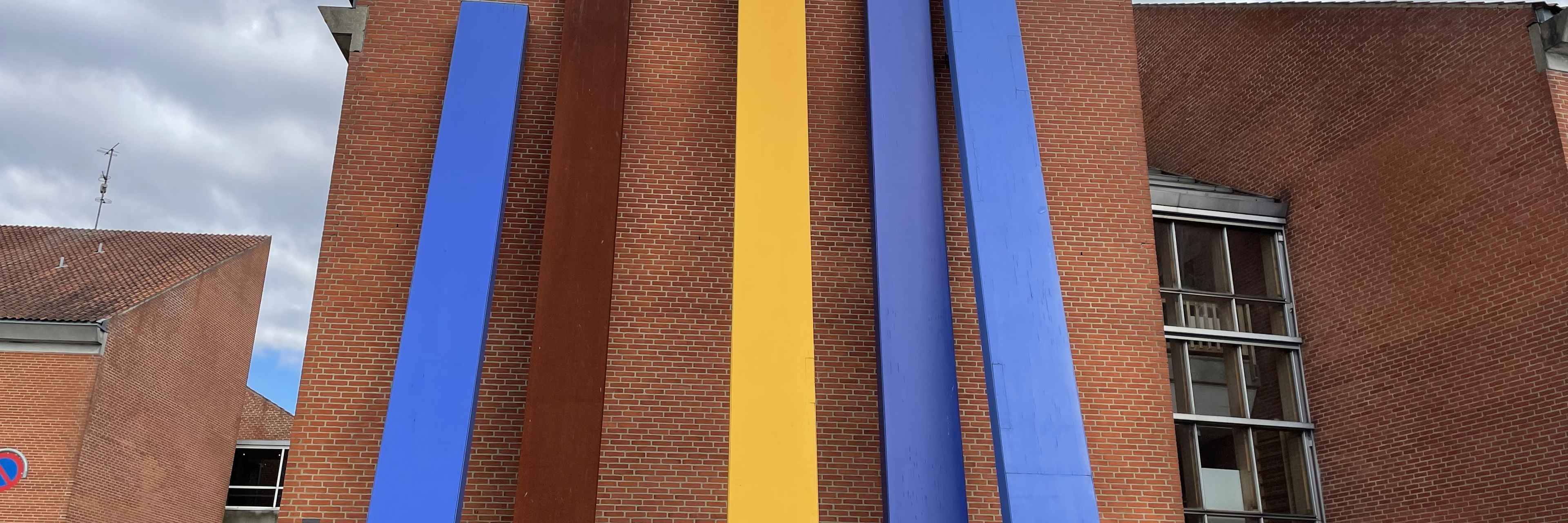 Adding colour to Randers seems to have been the vision behind this piece, by pop- and poster artist Per Arnoldi, which involves five huge paint sticks. Three of them are in blue nuances, one is in yellow, and one is in rust red.