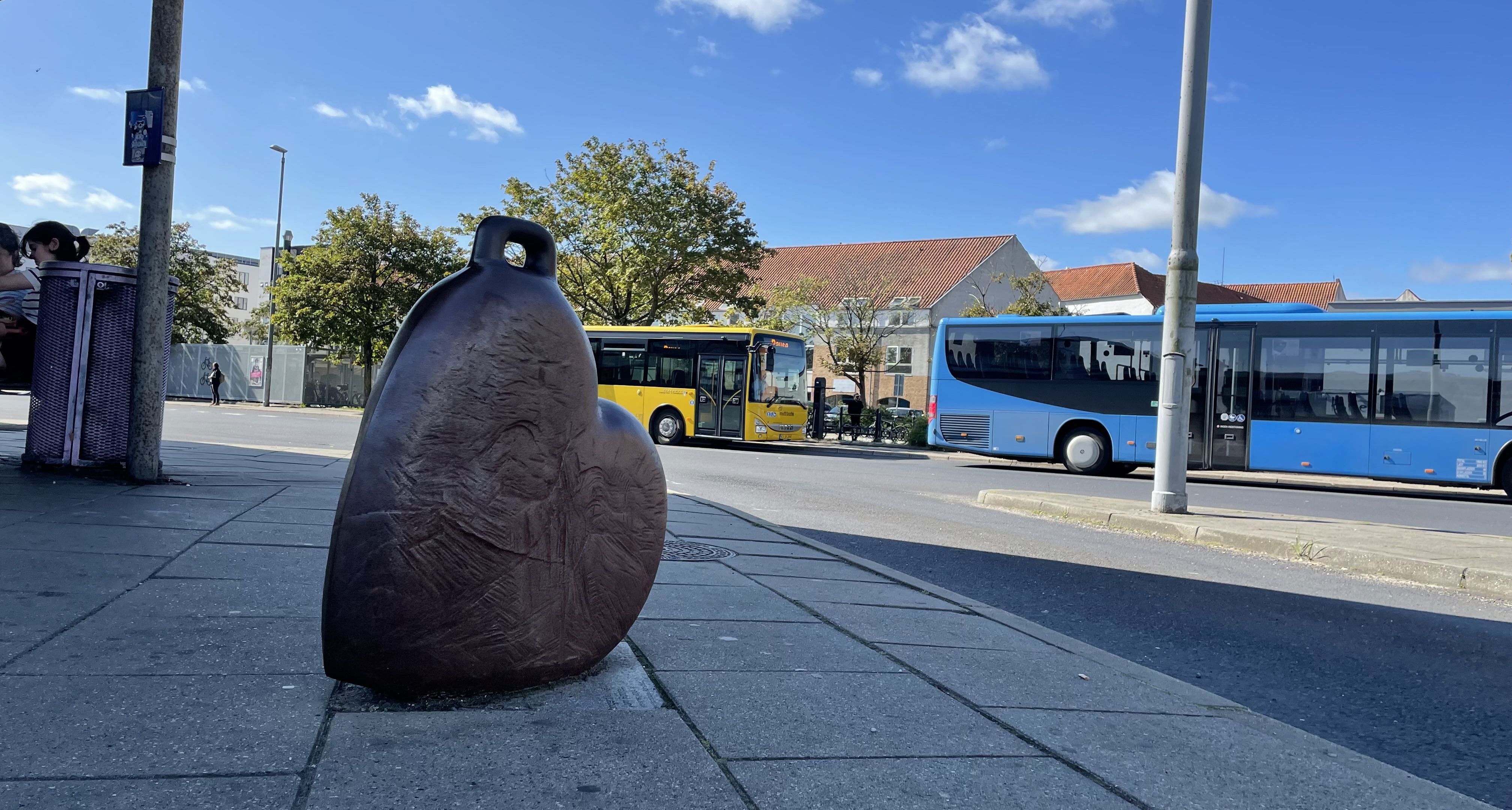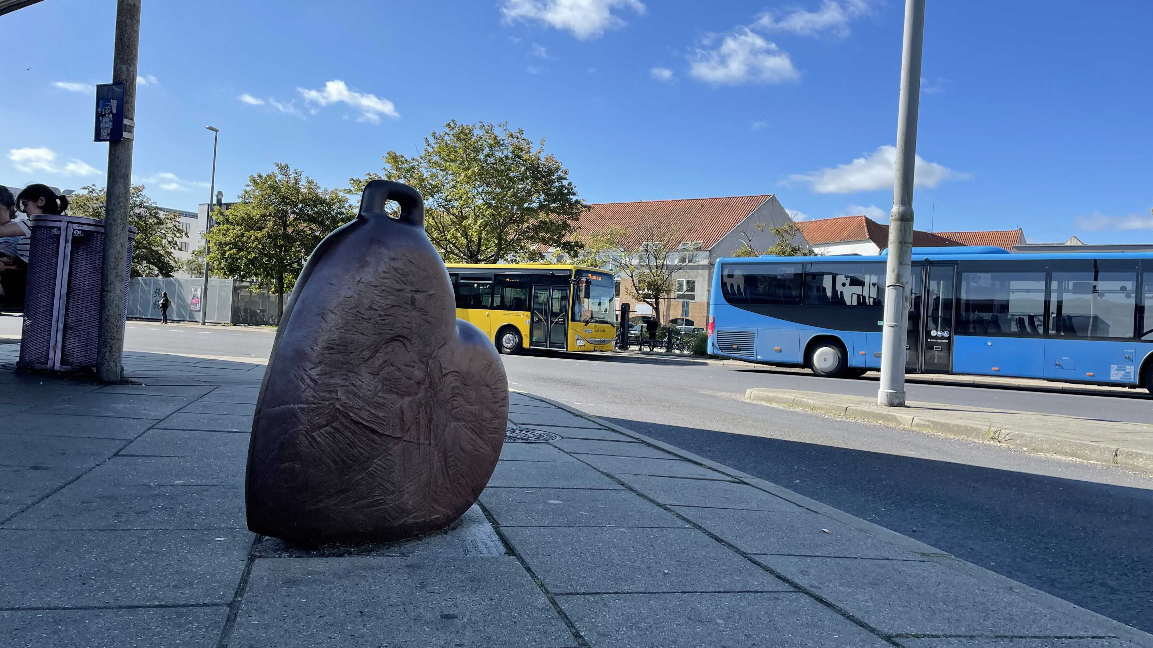 Like a piece of lost luggage, this peculiar suitcase-sculpture makes us remember to bring our heart with us on our journey through life. The artist from Århus remembered this himself, when he established the now abandoned sculpture park Krakamarken near Randers, some time ago. Thus the work is a testimony of a personal travel experience – a trip to Randers.