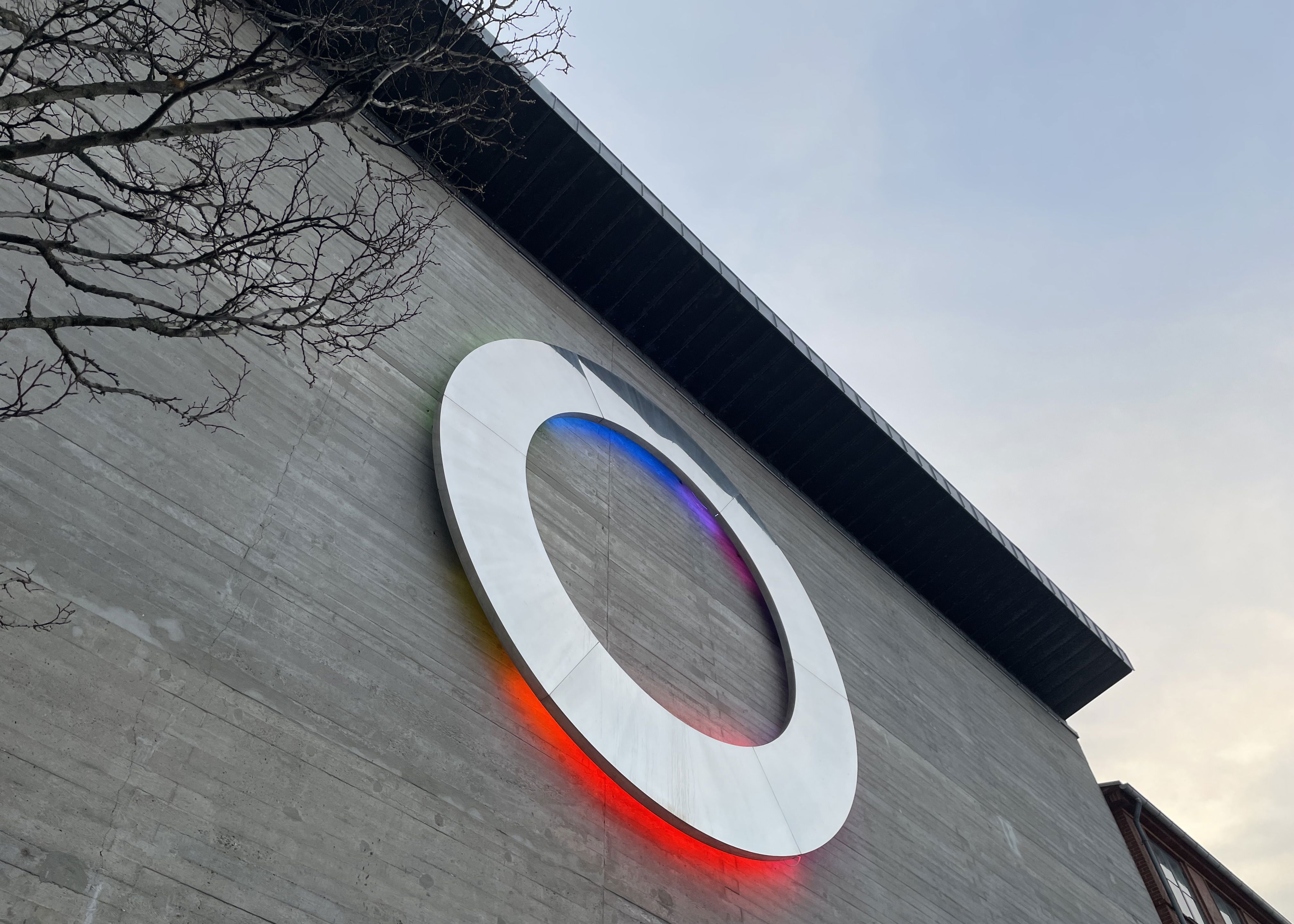 En meget markant vægskulptur, der i kraft af sin placering over kulturhusets hovedindgang kan tillægges en enkel symbolik: Ringen udtrykker enheden, mens den mangefarvede lysudstråling symboliserer mangfoldigheden i Kulturhusets virke.