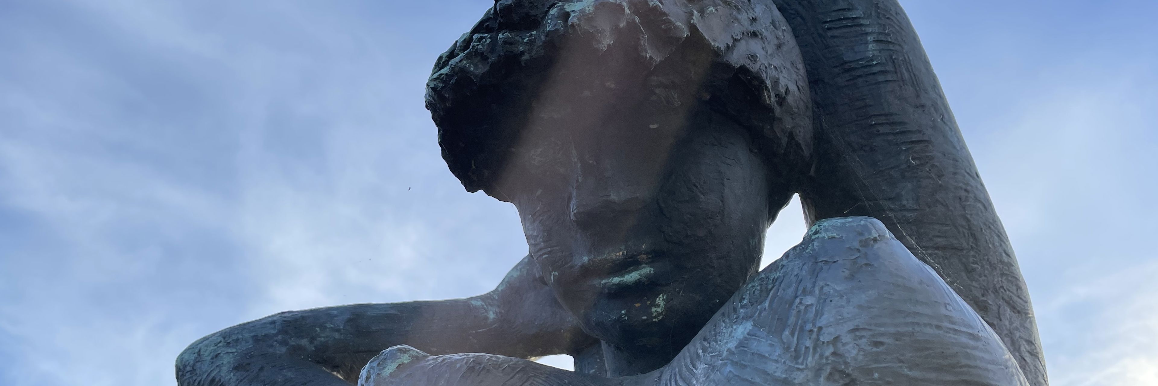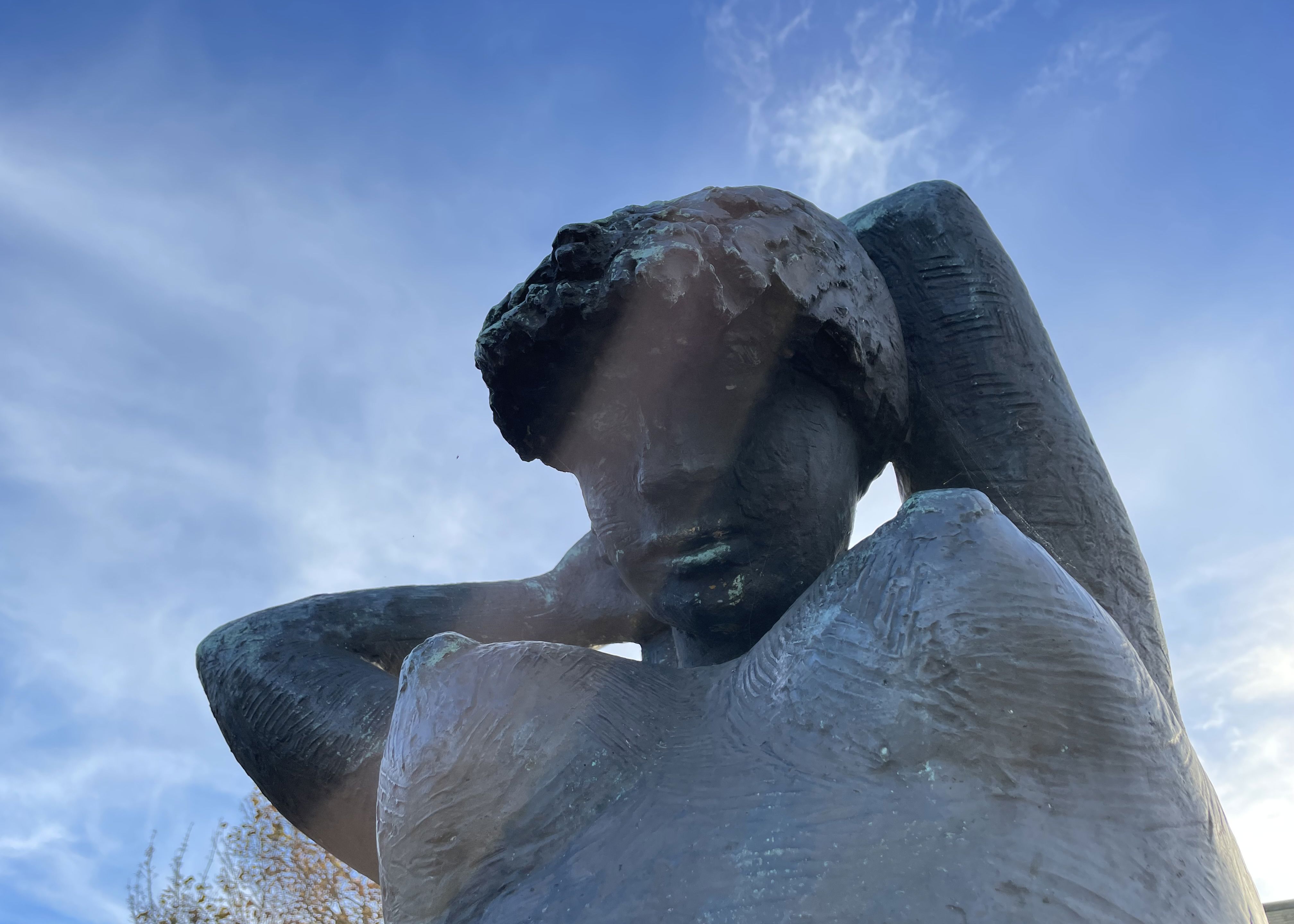 Skulpturen kom til Randers i 1969 i forbindelse med indvielsen af det daværende Randers Kommunale Gymnasium. Den er et glimrende eksempel på kunstnerens forenkling af kvindemotivet. Der er ingen overflødige detaljer, men hendes tunge krop opvejes af bronze-overfladens livlige ridser. Hun er ganske naturlig, som hun sidder der afslappet og ordner sit hår.