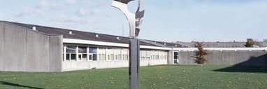The stainless steel is characteristic of Børge Jørgensen. Oftentimes nature acts as inspiration for the abstract, yet organic shapes are reminiscent of sprouting growths. However, the sculpture also bears resemblance to an oversized tool. The upper part of the sculpture is able to twist around its own axis, symbolising the logo of AMU-Centeret, which stands for quality, flexibility, adaptability and development.