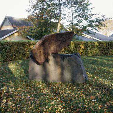 Den rustrøde englevinge balancerer på kanten af en stor, mørk sten og vækker mindelser om opstandelsesberetningen fra Matthæusevangeliet. Her stiger en engel ned og vælter stenen fra graven, hvor Jesus lå. Graven er tom, og englen forklarer, at Jesus er genopstået. Placeret på de ukendtes grav på Asferg Kirkegård står skulpturen som et fredfyldt symbol på livets afslutning.